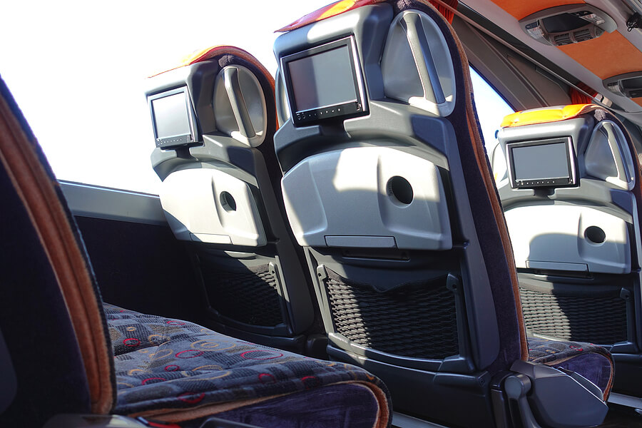 Read on to see the different amenities that you can find onboard! But keep in mind: availability varies based on the model and build, so it’s best to confirm which amenities are available on your charter bus when you call our team at 877-563-2133 to make your reservation.